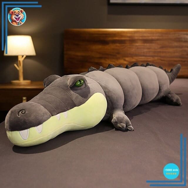 Invitez ce féroce animal à rejoindre votre monde et commencez des magnifiques aventures avec lui. Sa texture douce et son apparence très réaliste font de ce grand crocodile en peluche une adorable décoration pour la chambre à coucher de votre enfant, créant un thème de la savane.
