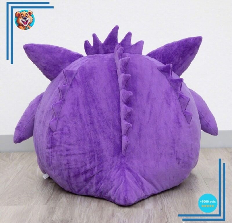 Offrez-vous une peluche géante unique en son genre, représentant un ectoplasma avec sa langue tirée. Un cadeau original et amusant pour les fans de Pokémon !