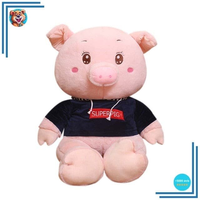 Un cochon géant en peluche de 100 cm avec des grands yeux brillants