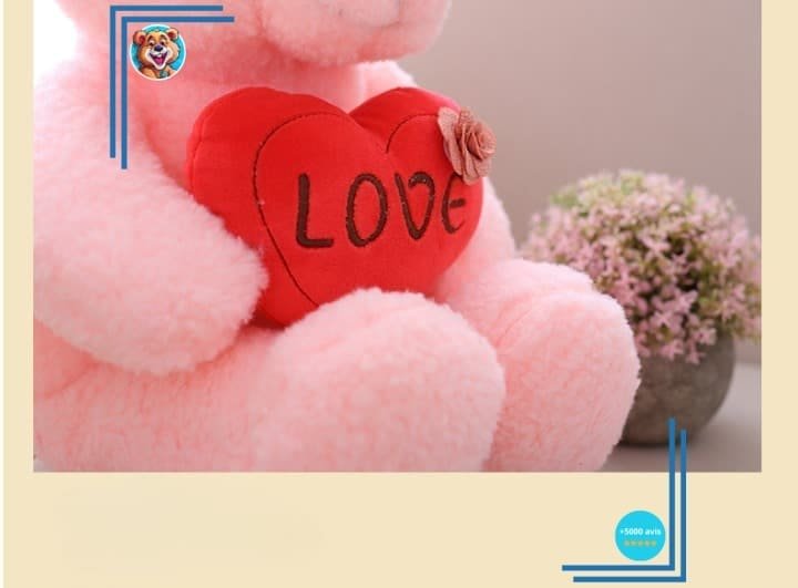 Vous recherchez le cadeau idéal pour exprimer votre amour ? Ne cherchez plus, nous avons la solution ! Notre peluche ourson rose Love est parfaite. Sa douceur et sa tendresse vous aideront à déclarer votre flamme à l’amour de votre vie. Son allure mignonne et ses pattes potelées font de lui le compagnon parfait pour câliner ou décorer la chambre d’un enfant. C’est le cadeau de Saint-Valentin par excellence !