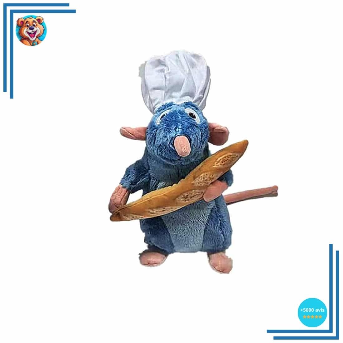 Le rat que tout le monde adore, tiré du film Ratatouille, le rat Rémy, est désormais disponible sous forme de jouet. Une magnifique peluche toute douce tenue par une petite patte tenant une baguette de pain. Offrez des moments inoubliables à votre enfant avec cette ravissante peluche Ratatouille. Elle deviendra rapidement un membre de votre famille ! Cette adorable petite créature procurera des heures de joie et de plaisir à votre enfant. Ce jouet fait à la main est doux au toucher et fabriqué à partir de matériaux haut de gamme. Ratatouille est vêtu d’une toque rouge et d’un bandana bleu, prêt à cuisiner !